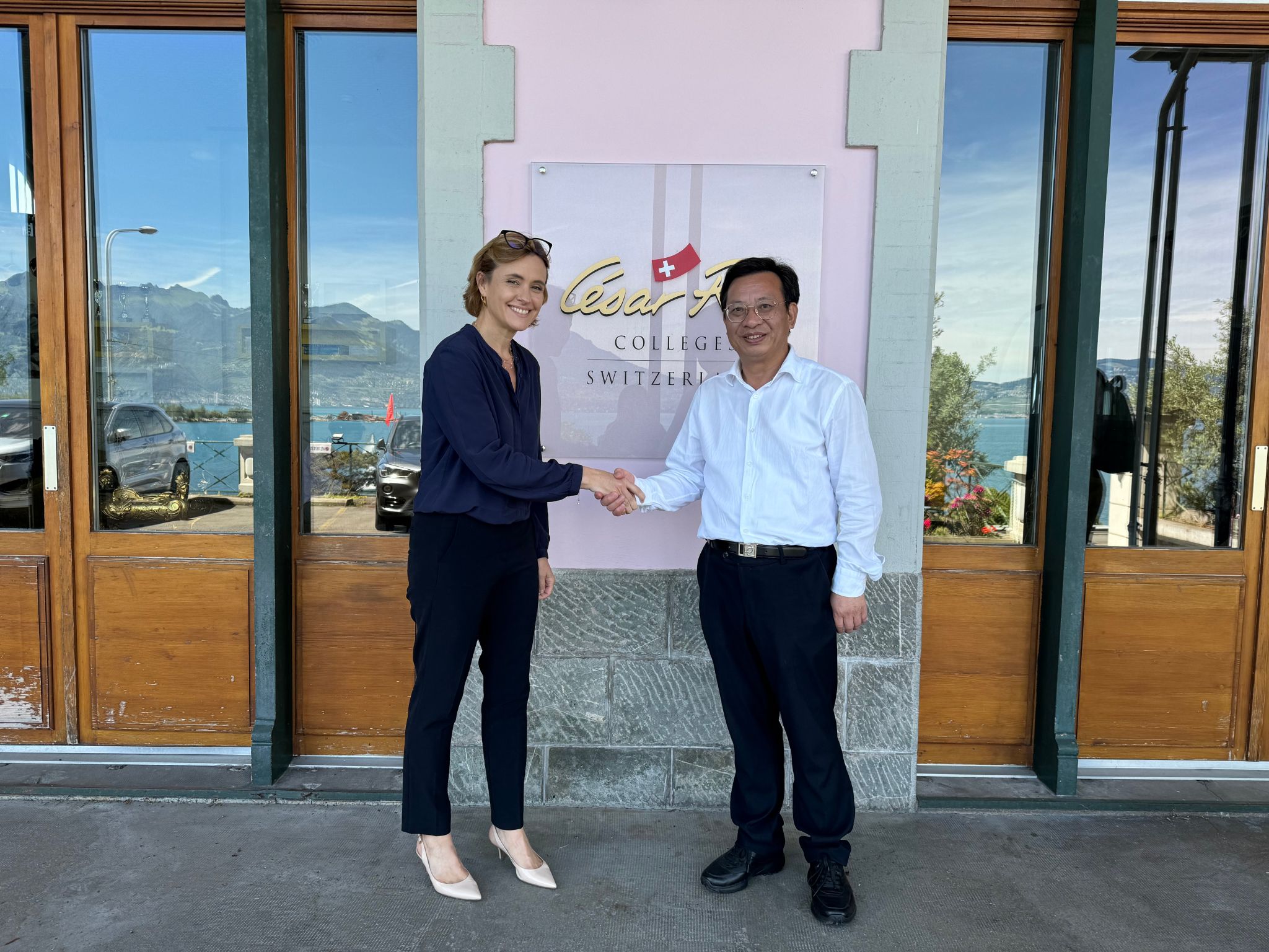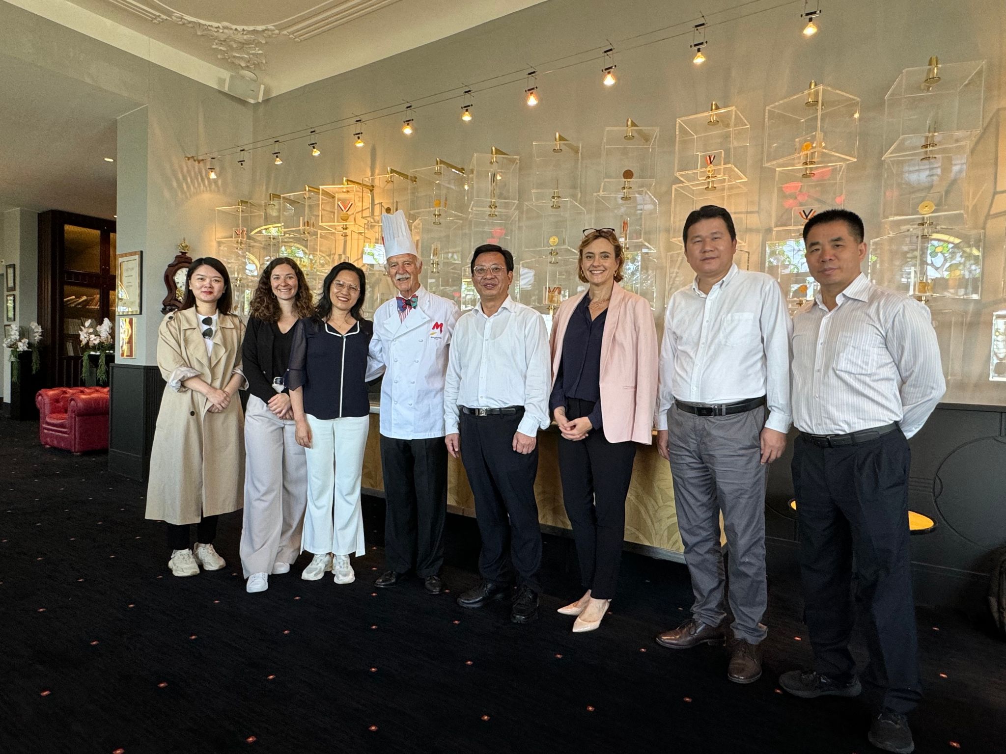 在瑞士,代表团一行会见瑞士恺撒里兹酒店管理大学校长Dominic Szambowski、瑞士教育集团全球对外合作与发展总监Tarsila Fercher Geis、全球伙伴关系与发展经理Tamara Mauroux、瑞士酒店管理大学项目经理Mikhail Prudent,走访瑞士酒店管理大学、瑞士蒙特勒工商管理大学、瑞士恺撒里兹酒店管理大学和瑞士美食艺术管理大学,就共同开展人才联合培养、地区酒店款待业高级管理人员培训等领域进行商讨。
