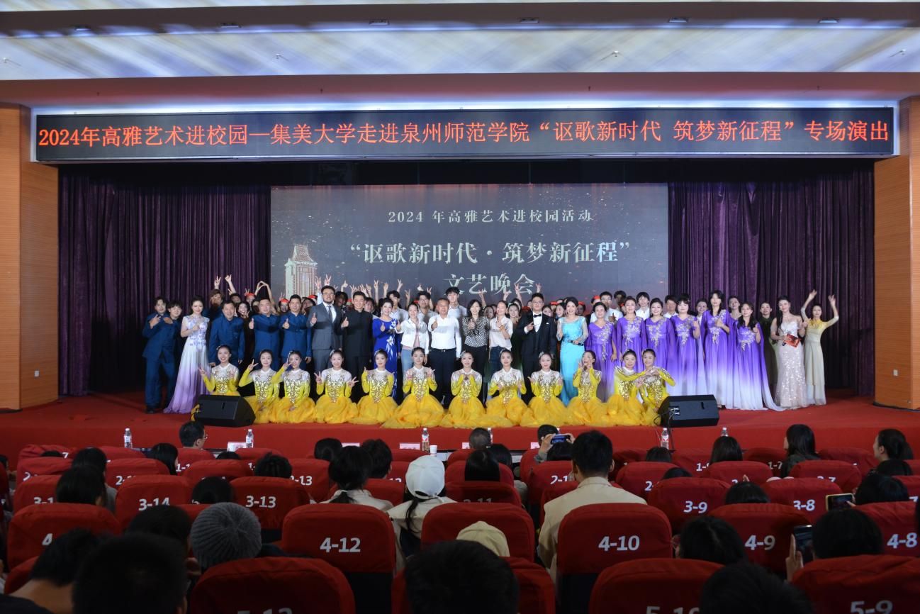 11月6日至7日,2024福建省高雅艺术进校园活动“讴歌新时代 筑梦新征程”文艺晚会分别在泉州师范学院和泉州信息工程学院精彩上演。此次活动由福建省教育厅主办,我校承办。晚会节目由我校音乐学院精心创排、倾情出演。