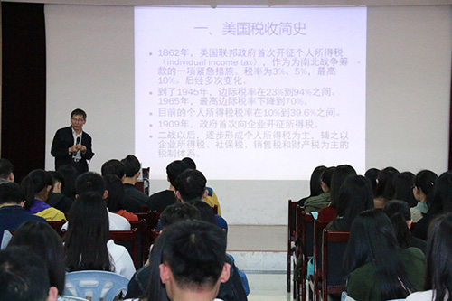 3月30日下午,财经学院在办公楼二楼多功能厅举办嘉庚财经讲坛之专家论坛第11期,论坛主题是“特朗普减税方案”的国际影响。我国著名财税专家靳东升应邀主讲,学院院长梁新潮、相关老师和学生参加了论坛。