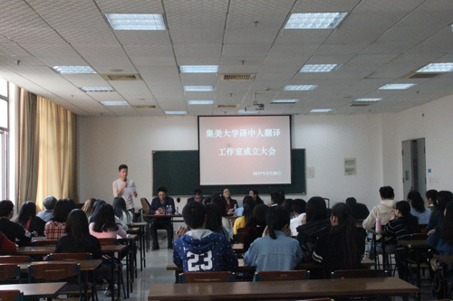 成立大会上,学院有关老师介绍了译中人翻译工作室成立的宗旨和筹备过程,工作室有关负责人宣读了译中人翻译工作室的章程和工作室口译和笔译成员名单。学院翻译系副主任希望成员们加强练习,提高翻译能力和口语水平,参加各种实践,做好翻译工作。