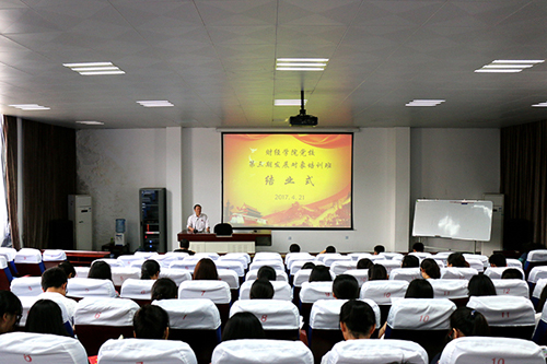 4月21日下午,财经学院举行党校第三期发展对象培训班结业式。学院党委书记周邵生、党委副书记陈志鸿,党委组织员、全体辅导员及培训学员参加了结业式。