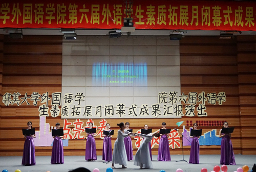 5月26日晚,外国语学院在月明楼举办第六届外语学生素质拓展月闭幕式成果汇报演出。学院党委副书记陈雅珍,学院团委有关老师、各年级辅导员、班主任观看了演出。