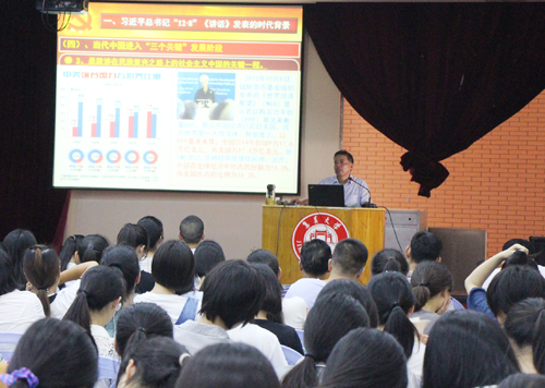 5月31日下午,教师教育学院举办“学习习近平总书记在全国高校思政工作会议上的重要讲话精神”主题讲座。我校党校原常务副校长邹文勇应邀主讲,学院全体教师、学生党员聆听了讲座。