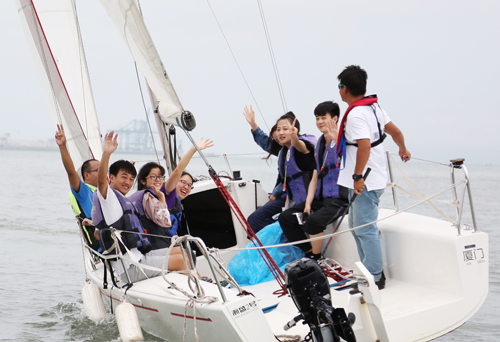 6月19日,即将毕业的我校法学1314班学生开启了一次特别的毕业之旅,这是我校优秀校友、校友会副会长、厦门瀚盛游艇有限公司董事长胡乃盛为今年毕业生免费提供的五缘湾游艇港海上帆船体验活动。