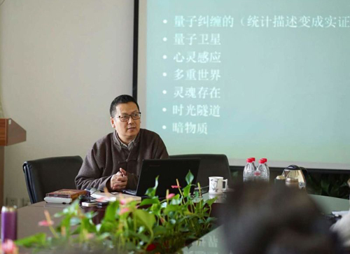 讲座中,臧艺兵以量子卫星的社会应用为导入,从超弦理论与毕达哥拉斯宇宙即音乐和数学的理论语境出发,讲述了超弦理论将宇宙振动作为万物存在的基元、量子纠缠理论的科学原理与人类音乐的密切关系;将音乐在古代希腊文明中的地位同中国周代礼乐文明进行交叉追溯,通过聆听欧洲古老圣咏音乐音响,揭示了音乐与宇宙、时间、空间的无限神秘色彩,以及人如何通过生命体验声音并创造了与数学、语言并列的开启宇宙的第三把钥匙——音乐。臧艺兵还举出实例说明人类的音乐如何产生与日常生活和生命的实际需要,又如何构成了人类道德和风俗的重要组成部分;展示分析了先秦曾侯乙编钟乐器的数理和技术构成,音乐的律制,调性、音阶,和声以及不同文化历史条件所形成的人类各种音乐的数学哲学原理。