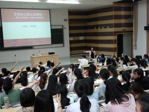 讲座结束后,新生们协助林赞歌完成了心理调查并表示认识到了心理健康的重要性,初步了解了应对成长问题、调节心理的诸多方法,明确了大学生活的方向。