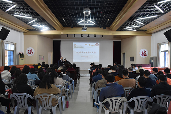 3月7日下午,财经学院召开全体教职工大会,传达学校教学工作会议精神。学院全体教职工参加了会议,会议由学院党委书记周邵生主持。