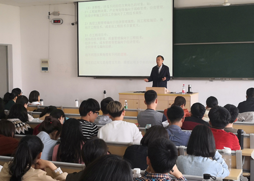 近日,东南大学土木工程学院建筑与房地产系博士生导师、东南大学工程项目管理研究所所长成虎教授应邀做客工程技术学院专业学术论坛,并做了题为“工程管理的视野思维方式”的学术讲座。学院领导与工程管理类专业师生150多人聆听了讲座。