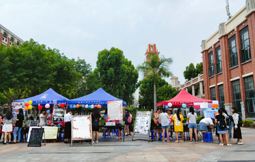 5月30日下午,外国语学院在万人食堂前举办2018年社团文化精品展。学院青年志愿者协会、英语演讲协会、新思想学习社等13个社团参加了本次活动。