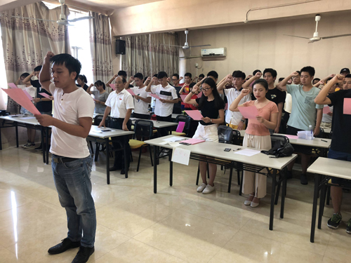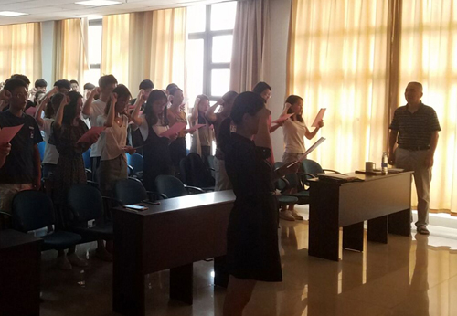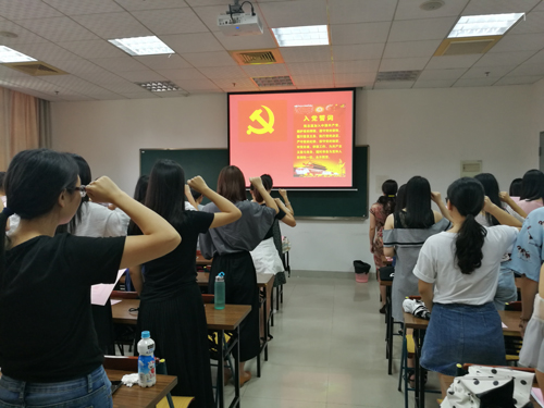 7月4日下午,海外教育学院举行新党员入党宣誓仪式,学院党委书记徐德辉、副书记卢其乐、相关老师以及全体学生党员出席了仪式。