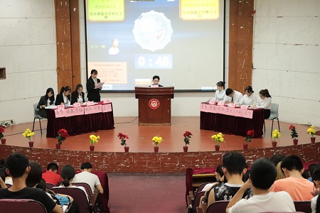 本次辩论赛,正方为理学院辩论代表队、反方为工商管理学院辩论代表队。比赛中,正方从社会经济效应、公益行动的发展等方面论述青春偶像崇拜利大于弊;反方从青春偶像微弱的激励作用、青少年不成熟的心智等方面论述青春偶像崇拜弊大于利。双方引经据典、旁征博引,有意识地引导新生从多角度看待问题,积极培养逻辑思维能力及语言表达能力。