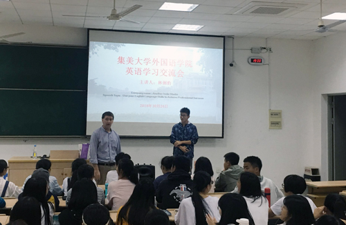近日,外国语学院举办了主题为“如何应用你的英语技能在职场上取得成功”的职场经验分享会。学院大一大二学生参加了分享会。外教Jesse的朋友林俐豹先生应邀主讲。