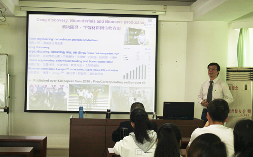 11月20日,台湾中兴大学生物医药工程研究所王惠民教授应邀来我校食品与生物工程学院进行学术交流,并作了题为“药物开发、生医材料与生物资源”的学术报告。报告由学院院长刘光明主持,学院各课题组教师以及硕士研究生聆听了报告。