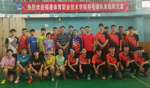 福建体育职业技术学院羽毛球队与体育学院羽毛球队进行了交流比赛。整个比赛学术水平高、对抗激烈、精彩纷呈,在交流球技的同时,也加强了院际之间的专业建设和学术交流。