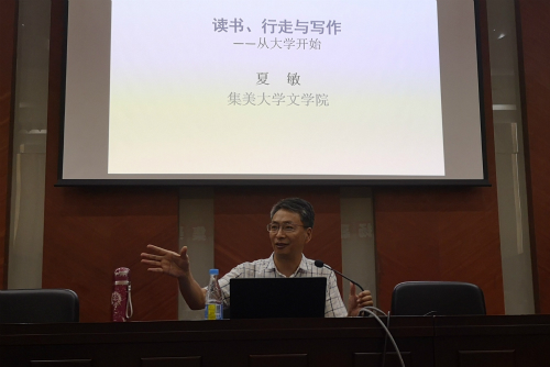 9月17日下午,我校文学院夏敏教授在尚大楼105报告厅为我校师生做题为“读书、行走与写作:从大学开始”的专场讲座,全校500多名师生聆听了讲座。