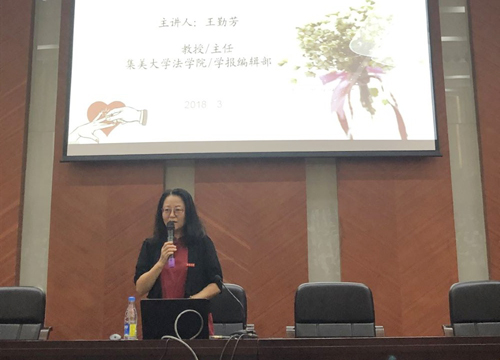 9月18日下午,校学报编辑部主任、法学院教授王勤芳在尚大楼105举办主题为“恋爱、道德、责任”的讲座,我校500多名师生聆听了讲座。