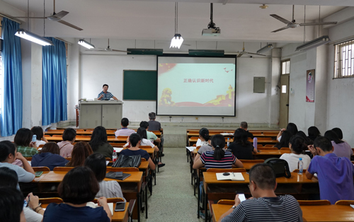 10月9日下午,海外教育学院举行以“正确认识新时代”为主题的“不忘初心、牢记使命”主题教育专题讲座,马克思主义学院彭前生教授主讲。讲座由学院党委书记徐德辉主持,学院全体教职工、学生党员和入党积极分子聆听了讲座。