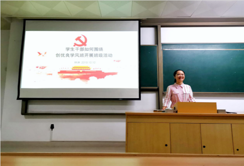 林琳详细解析了诚毅学院“优良学风班”“优良学风标兵班”评选实施细则;指导学生干部如何围绕创优良学风班制定阶段性的班级目标、撰写创建优良学风班计划书,如何根据班级情况开展针对性的班级学风活动等。她认为,学生干部作为联系教师和学生之间的桥梁和纽带,是创建优良学风班活动中的组织实施者,应在学风建设中起到良好的模范带头作用。因此,必须将学习态度端正、学习成绩优异、乐于为同学服务等作为学生干部选拔任用的重要条件,引导学生干部认识到只有专业学习能力强、学习成绩好、勤奋刻苦、钻研创新才能在同学中树立威信,更好地带领班级同学为营造良好班风学风而努力奋斗。