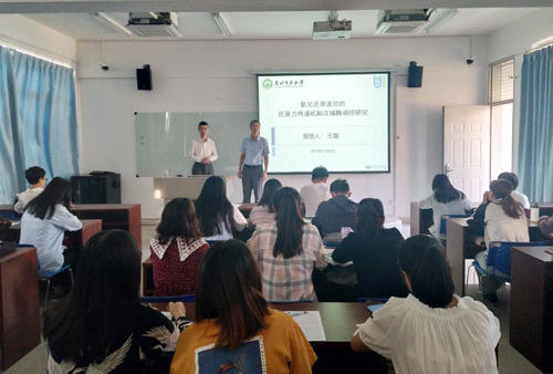 11月5日,东北电力大学王磊博士应邀来我校食品与生物工程学院进行学术交流,并为学院师生作题为“氧化还原途径的还原力传递机制及辅酶调控研究”的专题报告。报告由学院副院长倪辉主持,学院青年教师及研究生代表聆听了报告。