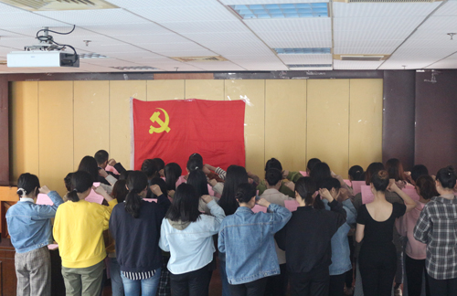 在庄严的《国际歌》中,在王文辉的领誓下,学院全体新党员举起右手郑重宣誓,面向党旗表达了坚定的入党决心。学生新党员代表发言,呼吁全体新党员要更加努力学习,为成为一名优秀党员而不断努力奋斗。