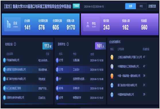 为应对新冠肺炎疫情对毕业生就业带来的不利影响,为用人单位和毕业生搭建安全、高效的交流平台,近日,港口与环境工程学院举办2020届毕业生春季线上双选会。