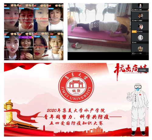 为了弘扬五四精神,宣传抗疫精神,水产学院团委积极响应校团委“绽放战疫青春·坚定制度自信”主题宣传教育实践活动的号召,于五四青年节前后开展微团课、微信接龙、演讲比赛、知识竞赛、平板支撑运动会、十佳歌手赛等一系列的线上主题活动,活动内容丰富,形式新颖,受到学院团学青年的喜爱和追捧。