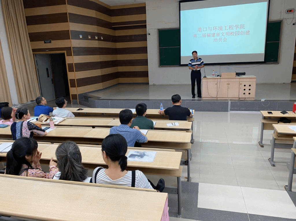 10月21日下午,港口与环境工程学院召开创建省级文明校园工作迎评验收再动员再部署会,全院教职工参加会议。