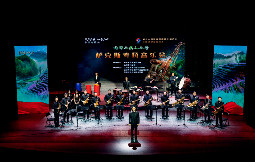 近日,音乐学院教师韩伟(韩成泽)受邀作为指挥在三明市举办的第十六届海峡两岸林业博览会“林深水美人长寿”萨克斯专场音乐会上演出。