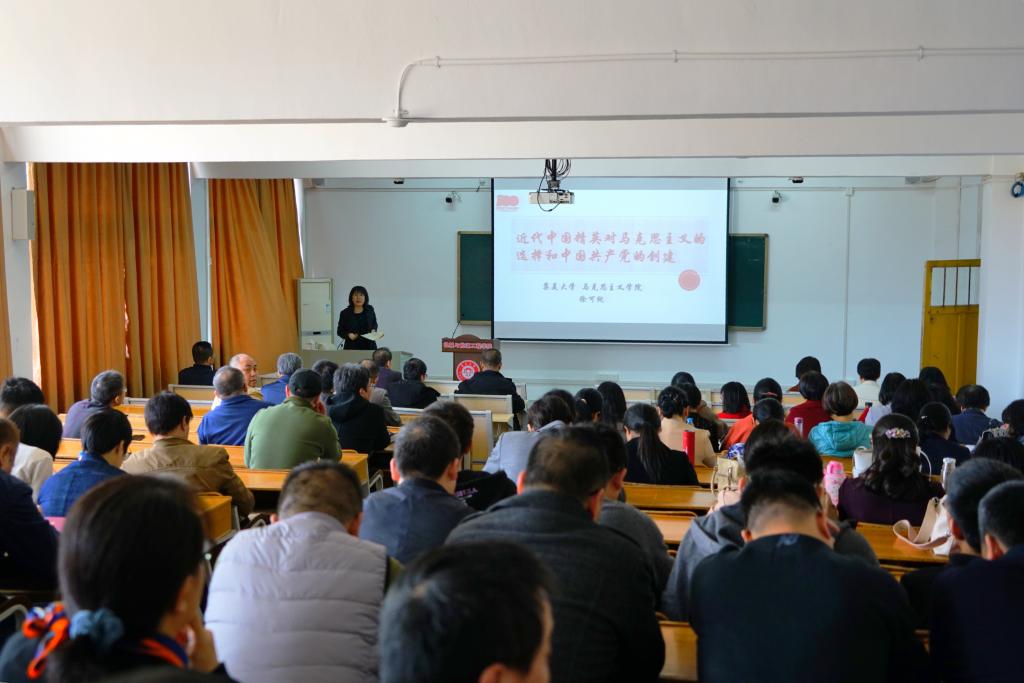 讲座中,徐可纯从近代中国社会的基本国情出发,通过讲解“近代以来中国人寻找国家出路、社会主义思潮传入中国、近代中国知识分子最终选择马克思主义原因分析、各地共产主义小组的成立和中国共产党的创建”,阐述了中国共产党成立的初衷和经过。讲座中,她结合中国人民对国家前途和命运探索的艰辛历程,讲述了马克思主义孕育了中国共产党人的初心,改变了中华民族的悲惨命运,实现了中华民族由近代不断衰落到根本扭转命运、持续走向繁荣富强的伟大飞跃。徐老师的讲座声情并茂、深入浅出,为学院全体教职工上了一堂生动的党史学习教育课。