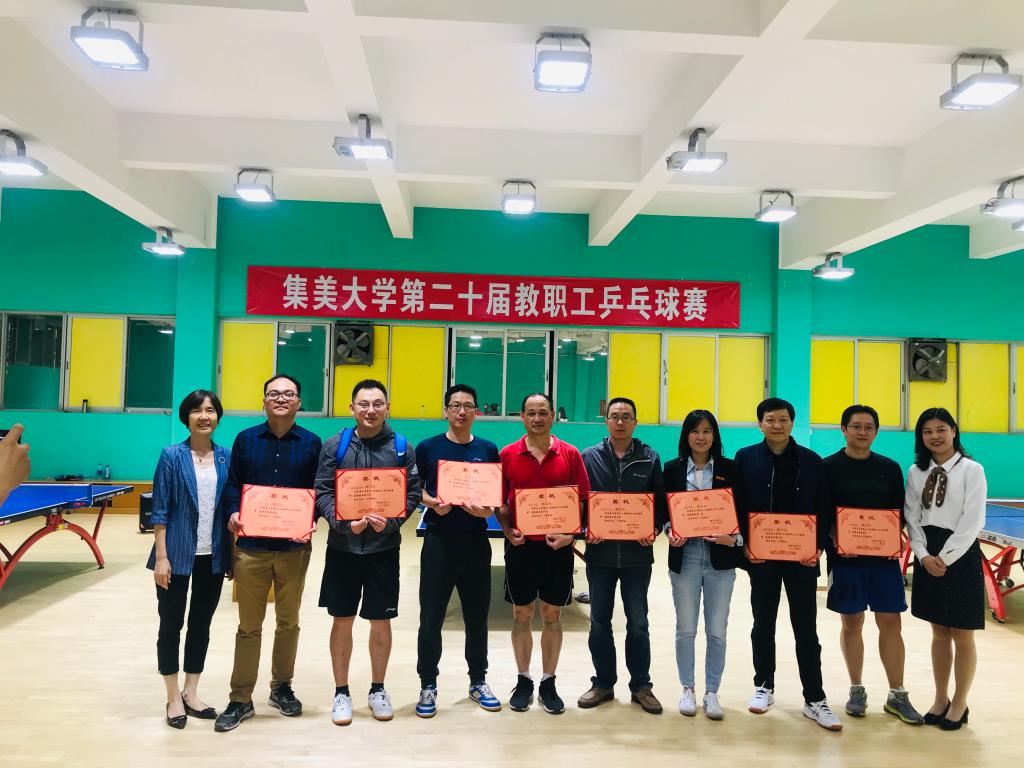 经过两个下午紧张激烈的比拼,最终体育学院、机关一队、工商管理学院代表队分别获得团体前三名;叶自鼎、林德富、施纯志分别获得男单前三名,陈蒙腰、骆映、郑美芳分别获得女单前三名。