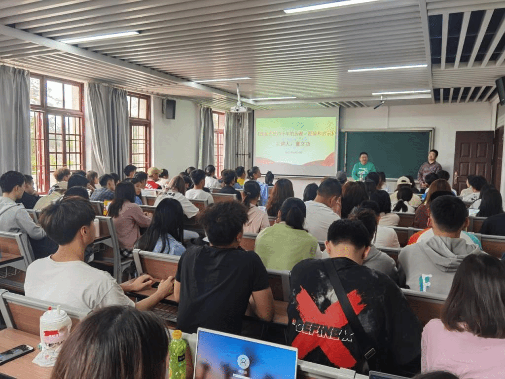 董立功以图文并茂的方式就改革开放大幕如何开启、改革开放事业如何全面推进以及改革开放如何深入展开,带领大家一起探讨中国是如何一步步走向世界、影响世界;生动的讲述了中国共产党自改革开放以来如何守初心、担使命。讲座的最后董立功还给大家带来了一段精彩的陈独秀独白,全场掌声雷动、经久不息。