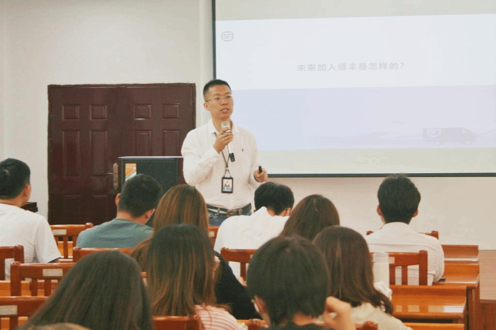 齐志涛首先从发展历程、业务概况、企业文化、职业发展途径四方面介绍了厦门顺丰速运公司的概况和未来学生加入顺丰后的发展情况。他重点强调了“顺丰班”的培养规划,表示将会开启理论课程和企业实训课,在理论加实际的基础上对“顺丰班”学生进行培训评估。此外,“顺丰班”还设有相应的奖学金与助学政策。