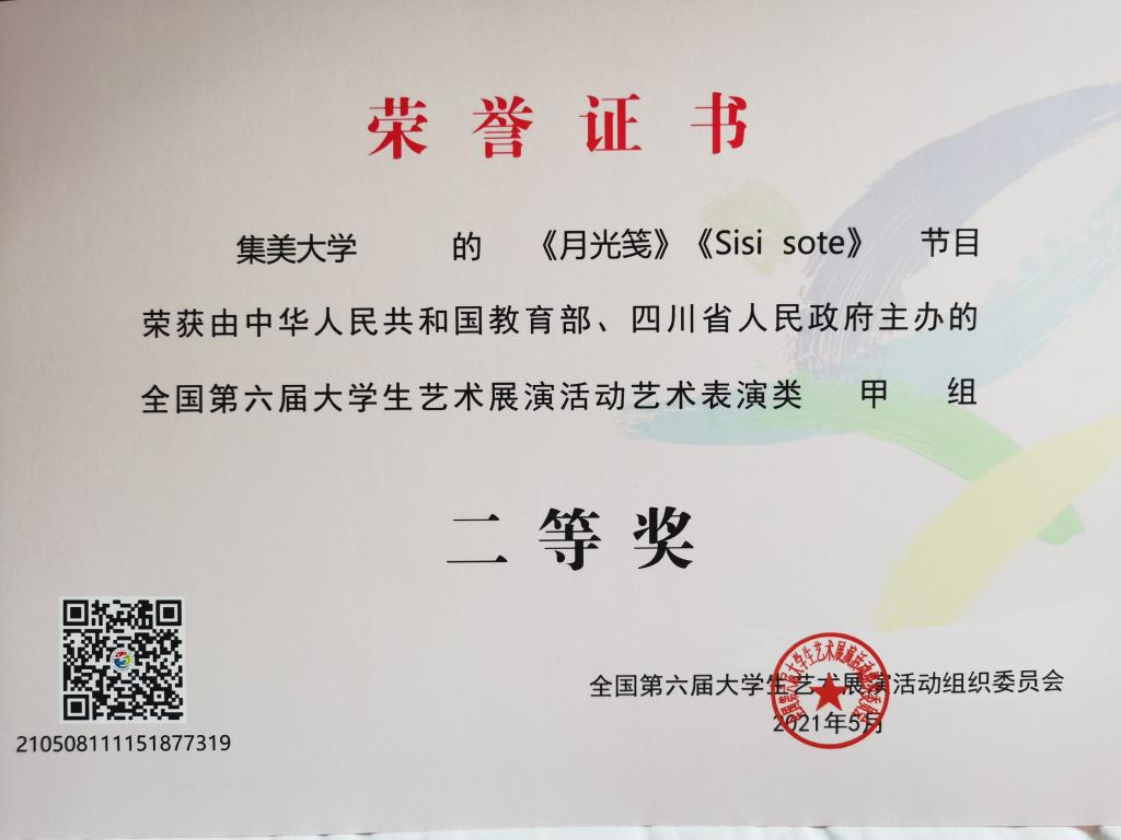 近日,由中华人民共和国教育部、四川省人民政府主办的全国第六届大学生艺术展演活动落下帷幕,师范学院教师林靖、教师林雨诗指导的沐音合唱团合唱作品《月光笺》、《Sisi sote 》获得该活动省赛艺术表演类甲组一等奖、国赛艺术表演类甲组二等奖。