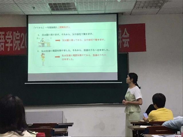 在日语系分会场,卓凌和徐惠君两位参赛教师进行课堂说课展示,日语系老师全员到场观看比赛,她们的精彩表现获得现场老师们的一致好评。副书记李铭钊莅临现场观摩并给予充分认可。