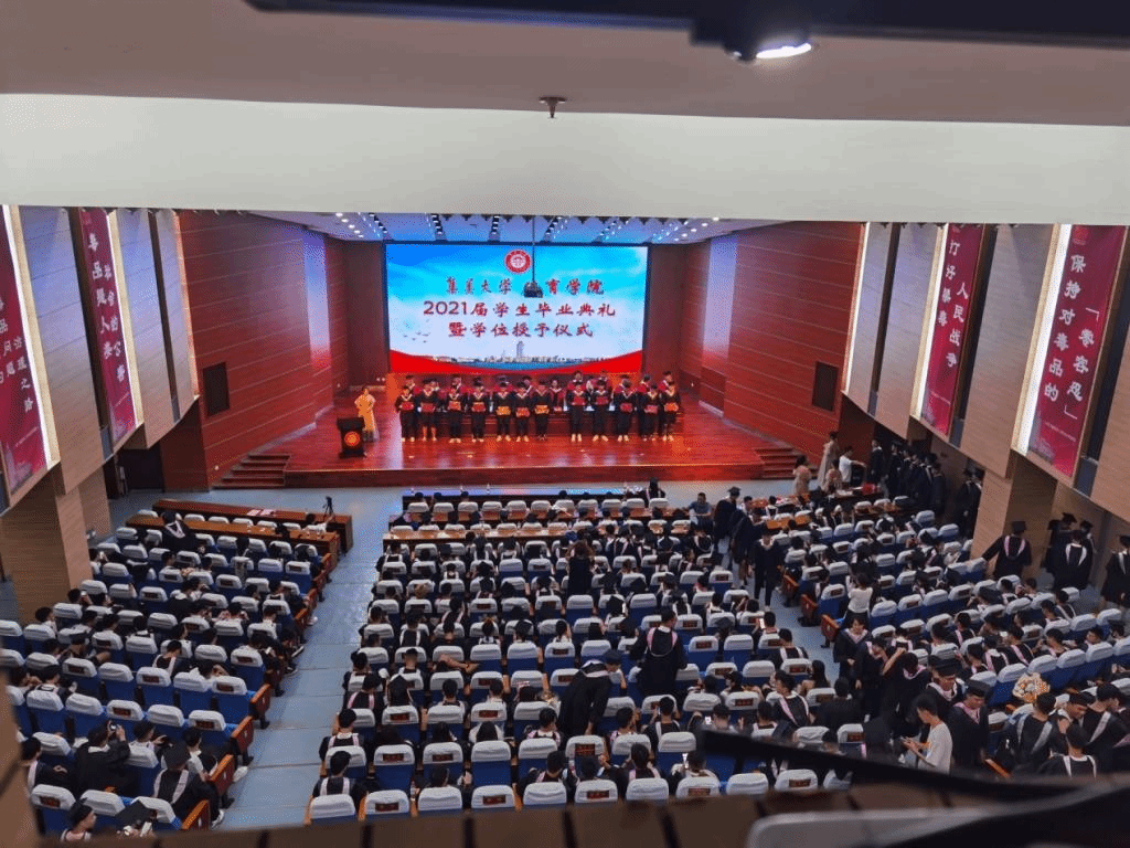 典礼上,院党委书记邱邑亮为优秀毕业生代表颁发荣誉证书。院长高楚兰教授作题为《以嘉庚体育思想筑梦青春》的致辞。她代表学院向全体毕业生送上最热烈的祝贺,向辛勤培育学生的园丁们致以最诚挚的感谢。在中国共产党成立100周年这一历史时刻,高楚兰真情回顾了校主陈嘉庚先生的“体育梦”和2021届毕业生的“集大日历”,指出他们是学校百年校庆和学院建院60周年的见证者和参与者,正是他们以嘉庚体育精神不懈奋斗燃起的点点星光,才汇聚成了学院今天发展的星河。她希望同学们弘扬嘉庚体育思想,坚守家国情怀,诚以待人,毅以处事,为祖国的体育事业奋斗,做新时代的追梦人,创造幸福人生。