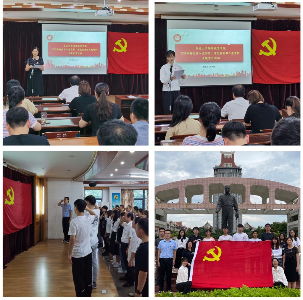 6月28日下午,海外教育学院在三楼多功能厅举行“新党员入党宣誓、老党员重温入党誓词”主题党日活动,院党委书记吴建平、党委副书记陈茂才、学院教工党支部、学生党支部全体党员参加本次活动,活动由陈茂才主持。