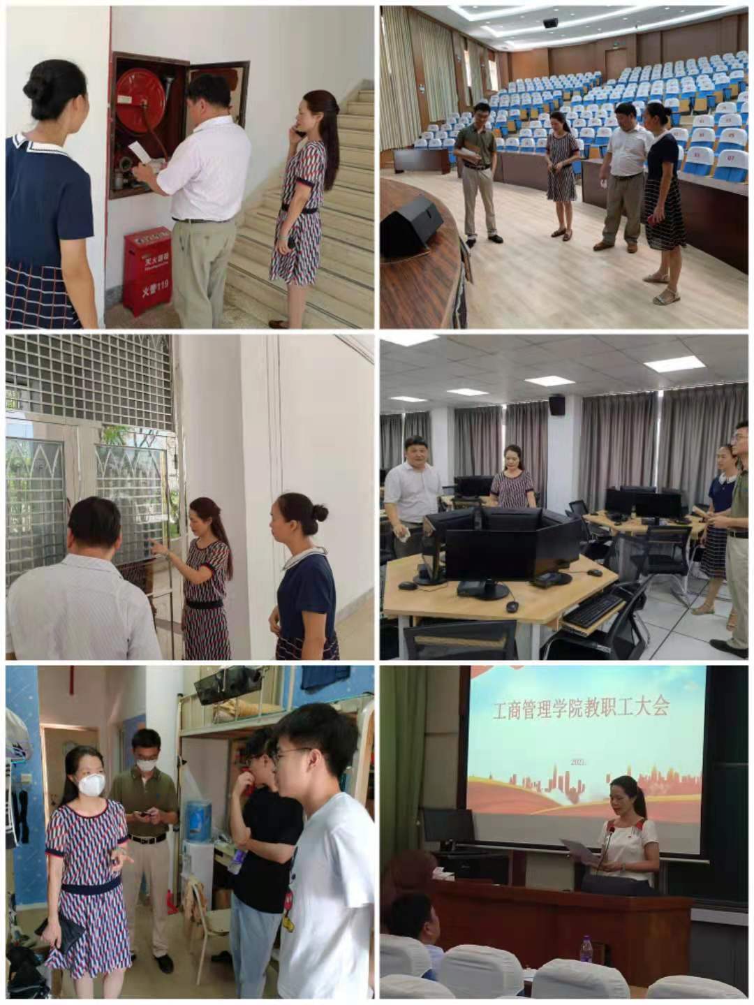 7月8日,院党委书记陈福昌、林芙蓉带领学院相关职能部门负责人,在全院范围内进行了校园安全排查,重点对学院的实验室、机房、报告厅和消防设施进行了安全排查,并到学生宿舍进行安全排查,并关心看望留校学生,关心毕业生就业和职业成长。