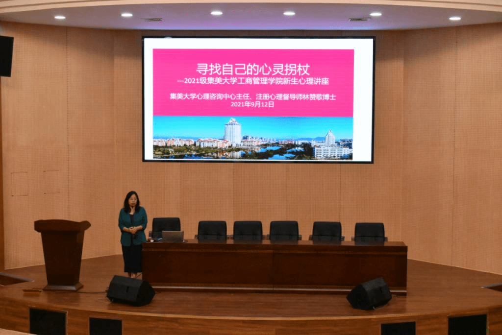 近日,工商管理学院邀请校心理咨询中心主任林赞歌举办“寻找自己的心灵拐杖”2021级新生心理健康讲座,学院全体新生聆听了讲座。