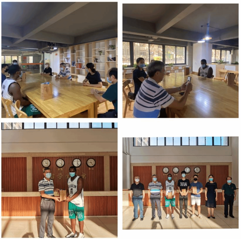 座谈会后,曹敏杰将学校准备的中秋礼包和学院准备的防疫物资送到学生手中,国际学生对学校的关怀表示感谢,纷纷表示虽然受疫情影响不能回国,但仍感受到了家的温暖。