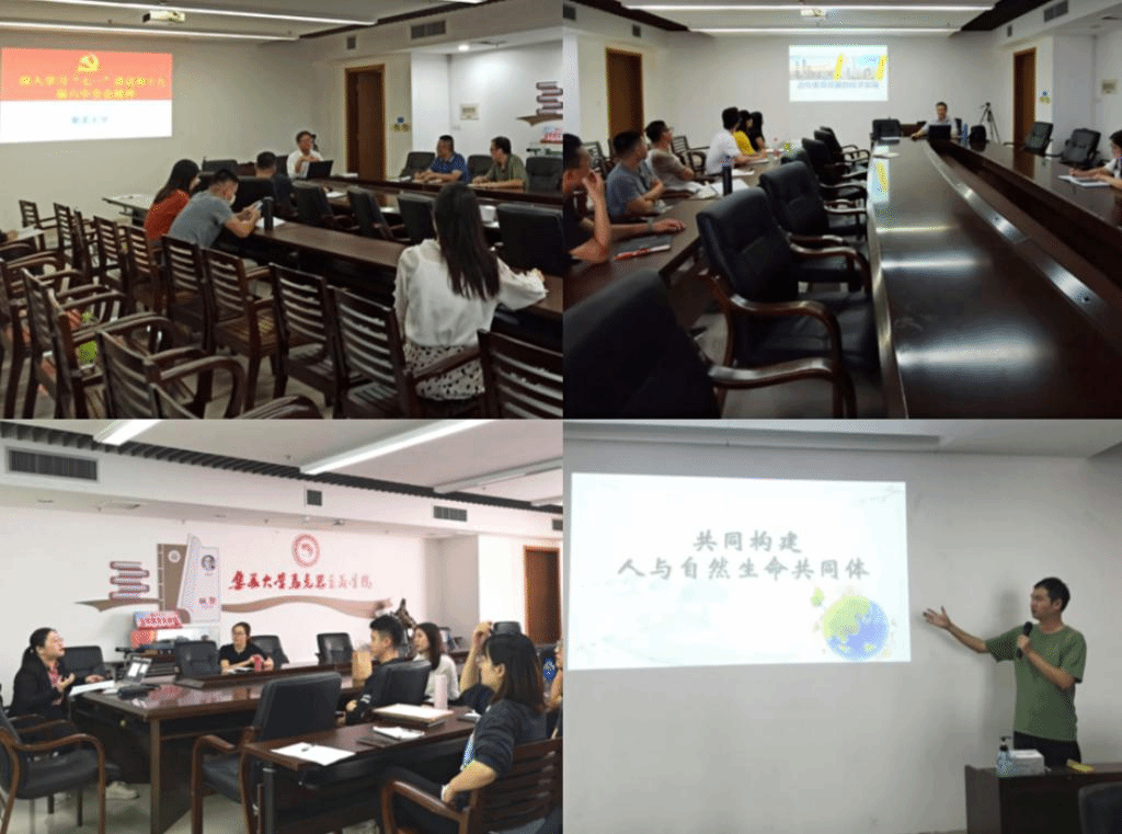 备课会上,马克思主义学院形势与政策教研室主任梅进禄以《深入学习“七一”讲话和十九届六中全会精神》为题,用大量的事例、翔实的数据对习近平总书记“七一”重要讲话的基本情况、主要内容进行了全面解读。他指出,2021年下半年“形势与政策”课教学中要将“深入学习贯彻党的十九届六中全会精神,以优异成绩迎接党的二十大”作为重要内容,并进行深入浅出的讲解。兰启发以《迈向高质量发展的中国经济》为主题,分析了当前经济持续恢复、迈向高质量发展的态势。赖怡静以《台海形势的新变化新动向》为题,从沉着应对坚决挫败台独分裂图谋、休戚与共两岸命运相连不可分割、坚定信心 推动两岸关系克难前行三个方面,详细分析了当前台海形势的新变化新动向。徐晨以《共同构建人与自然命运共同体》为题,分析了全球环境治理面临前所未有的挑战,阐明构建人与自然生命共同体是全球环境治理的正确选择。