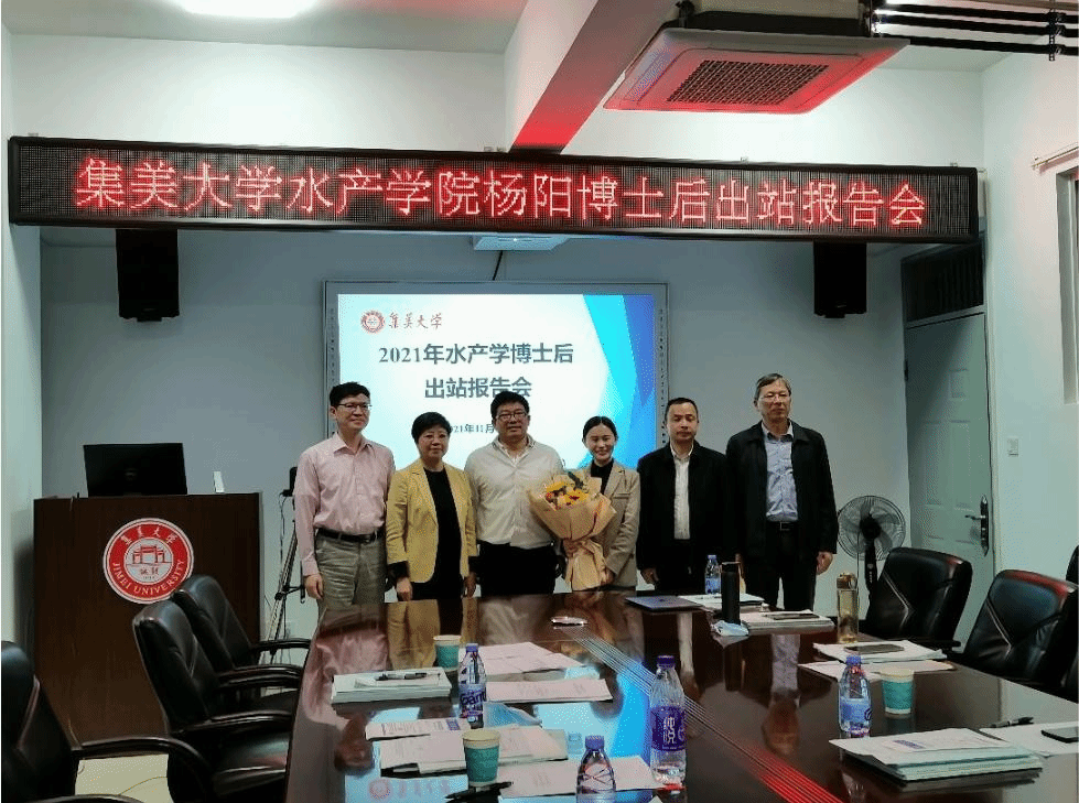 11月26日,我校水产学博士后流动站杨阳博士出站考核报告会在海洋食品与生物工程学院08A 511会议室举行。中国科学技术大学金腾川教授、厦门大学刘文贤教授、亚洲中文精品乱码曹敏杰教授、亚洲中文精品乱码王艺磊教授,博士后合作导师刘光明教授出席报告会。金腾川担任专家考核小组组长。