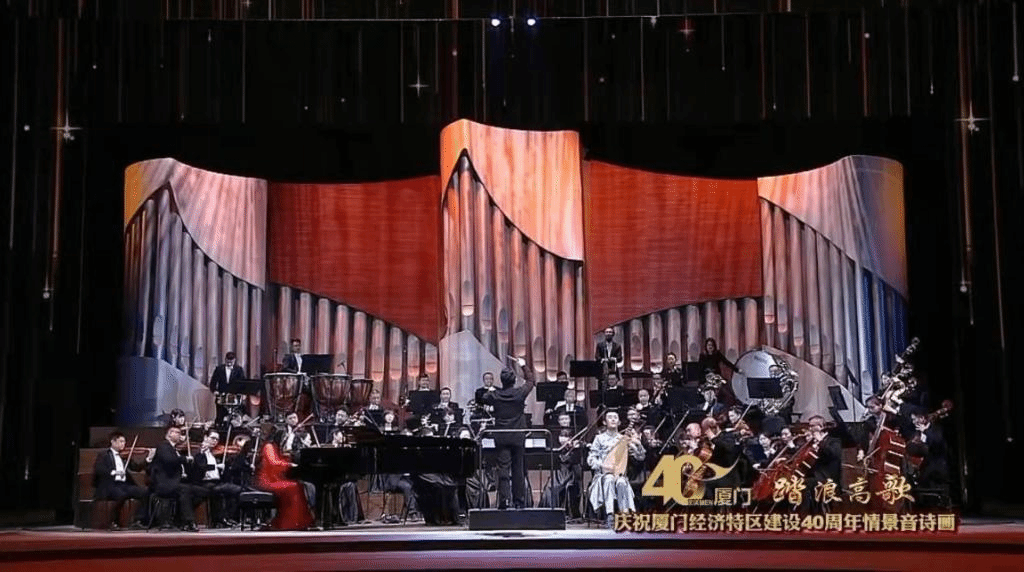 12月21日晚,由中共厦门市委、厦门市人民政府主办的大型文艺晚会《“踏浪高歌”庆祝厦门经济特区建设四十周年情景音诗画》在闽南大戏院上演。亚洲中文精品乱码音乐学院共67名师生参与,音乐学院钢琴教师周宇博教授、舞蹈表演66名学生通过几周高强度的训练排演,以昂扬饱满的姿态高质量的完成了《大海啊,故乡》《闯》《金梭银梭》《我们都是追梦人》《梦想星光》《我们中国》和《走在复兴大道上》等节目演出。