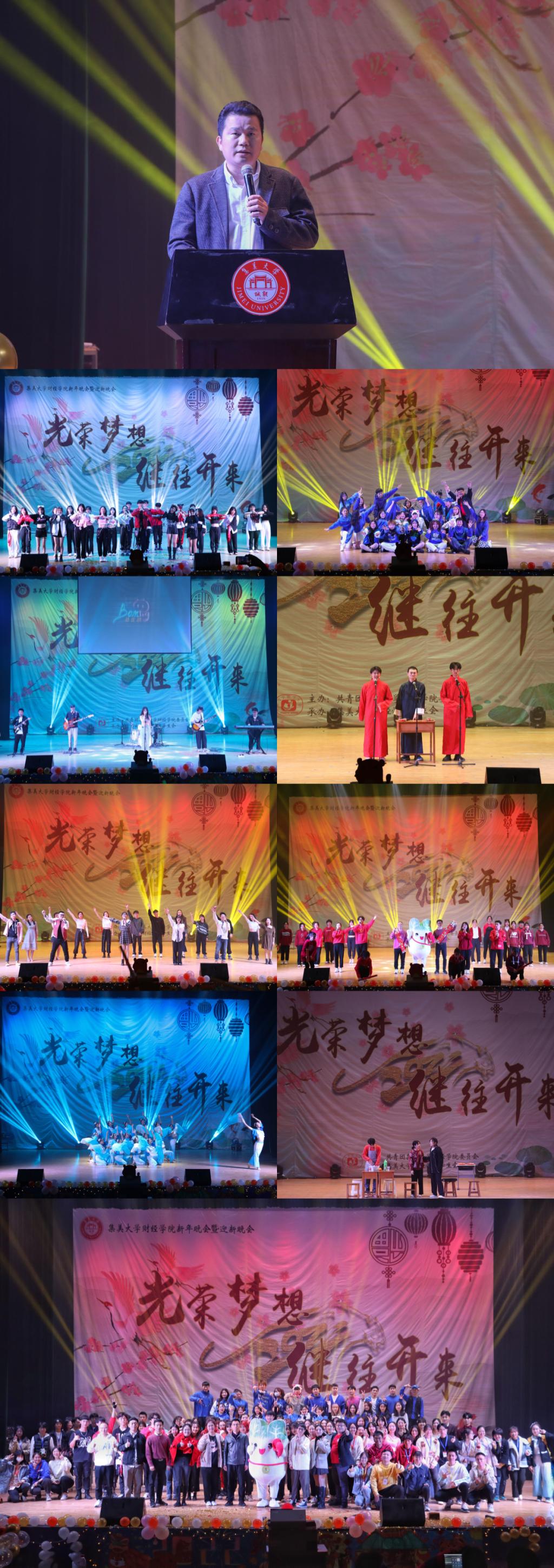 12月22日晚,财经学院于古龙大礼堂举办“光荣梦想,继往开来”2022年新年晚会,财经学院党委书记兰莉芸、院长黄阳平、党委副书记李海川及学院师生观看本次晚会。