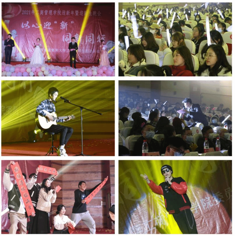 12月27日晚,工商管理学院于月明楼一楼报告厅举办“以心迎新,同新同行”迎新年暨迎新生晚会。院党委书记陈福昌、院长邱吉福、院党委副书记林芙蓉、副院长高绍福、副院长吴江秋、各系主任、2021级学生班主任、全体辅导员到场观看演出。