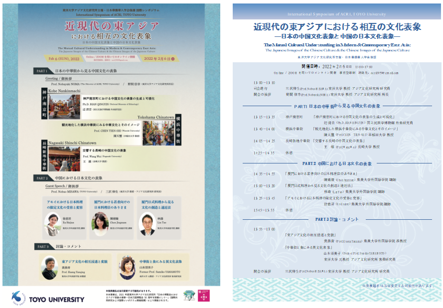 2月6日,由东洋大学亚洲文化研究所主办、日本华侨华人学会协办的“近现代东亚的相互文化表象”国际学术研讨会于线上举行。外国语学院日语系教师黄燕青、徐惠君、林涛、陈婧璇受邀参加此次学术研讨会,并做了以“日本文化在中国的表象”为主题的四场学术报告,受到日本与国内学者的关注与肯定。
