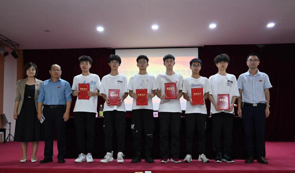5月13日下午,师范学院在吕振万文会阁举办2021级公费师范生学业知识竞赛颁奖仪式。院党委书记田建和、副书记张鸿、副院长谢书书出席会议,教研室相关教师、班主任代表、辅导员代表及2021级全体公费师范生参加此仪式。仪式由张鸿主持。