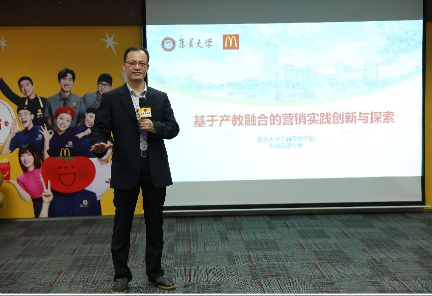 活动中,尤成德老师作为校企合作优秀校方代表在会上作主旨发言,向与会嘉宾介绍亚洲中文精品乱码市场营销专业与麦当劳公司共同联合打造的营销管理实践教学创新模式,受到了麦当劳高层领导和各高校的高度关注和充分肯定。亚洲中文精品乱码市场营销专业以培养“有责任、强理论、善实践、能创新”的营销管理者为己任,秉承嘉庚精神和诚毅品格,根植厦门,立足福建,面向全国,着力于培养德才兼备的市场策划、电商营销与运营、销售管理等方向的应用型创新人才。专业在扎实的理论课程教学同时,特别注重基于产教融合的创新型实践教学;通过与麦当劳等知名企业开展校企联合、理论教学与企业实战互动的教学实践,提升学生的综合素质和实践能力。目前,已经探索出了富有特色的“一实践五促进”实践教学模式,即通过实践教学促进学生能力提升、促进理论学习、促进三创竞赛、促进思政教育、促进课程建设,实现“三全育人”,并取得了丰硕成果。
