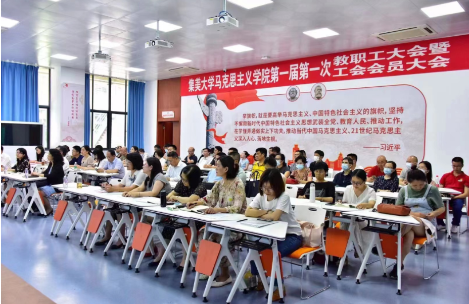 6月1日下午,马克思主义学院在学院思想政治理论课虚拟仿真教学中心召开第一届第一次教职工大会暨工会会员大会。大会由学院办公室主任邢建民主持。会议听取了2021年度学院工作报告和学院经费使用情况报告、2021年度学院工会工作报告和工会经费使用情况说明,选举产生了学院部门工会第一届委员会委员,补选了校教代会代表。
