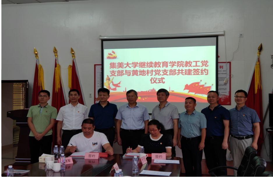 6月29日,继续教育学院教工党支部与集美区后溪镇黄地村党支部在黄地村党群活动中心举行了支部共建仪式。学校副校长曹敏杰、省政协委员陈昌生和校党委统战部、继续教育学院、诚毅学院、黄地村委相关领导见证了共建仪式。李金环书记、刘志宇书记签订了支部共建合作协议。