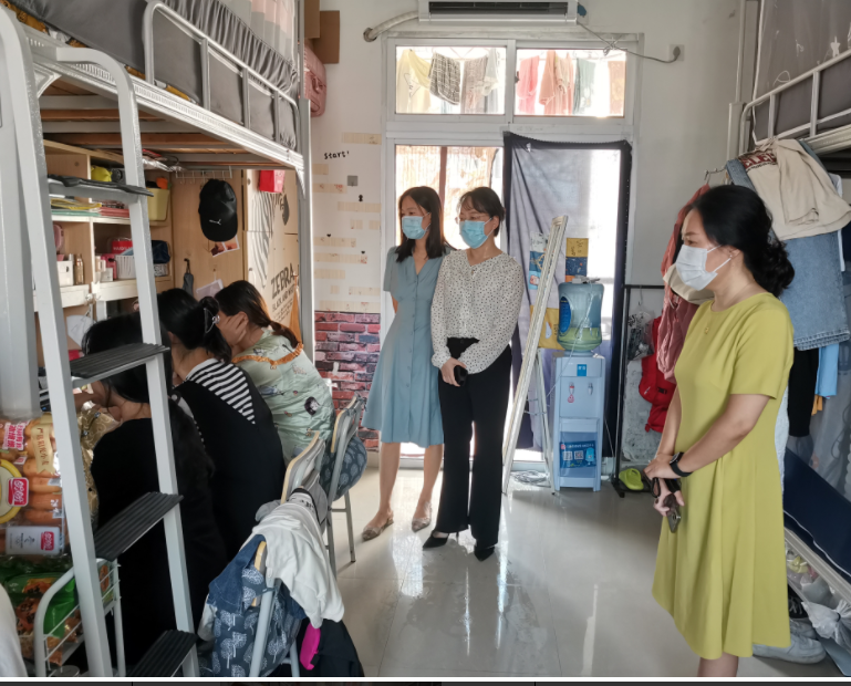院领导一行来到学生宿舍,与学生亲切交谈,了解学生返校状况及返校后线上教学、日常学习生活等情况,细心叮嘱学生尽快调整状态,认真上好线上课程;同时注意宿舍用电安全和卫生状况,认真配合学校做好疫情防控期间的各项工作,做好个人防护,保障健康安全。